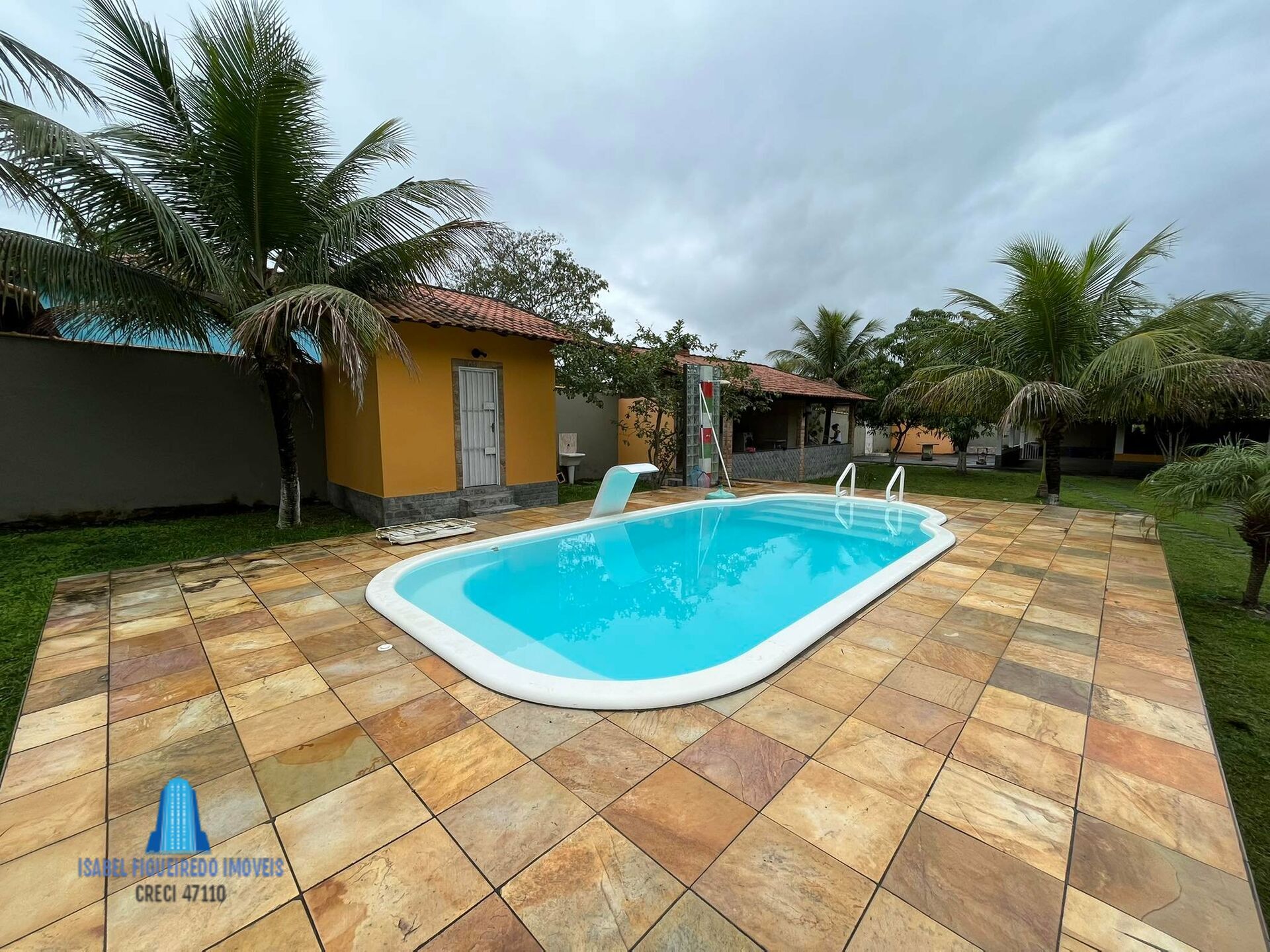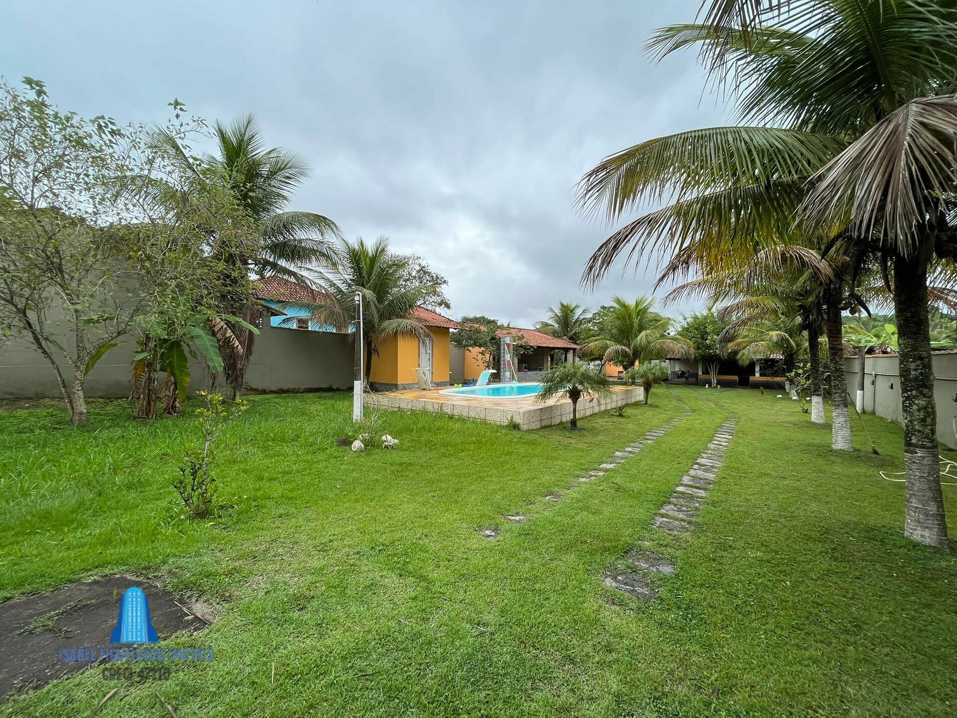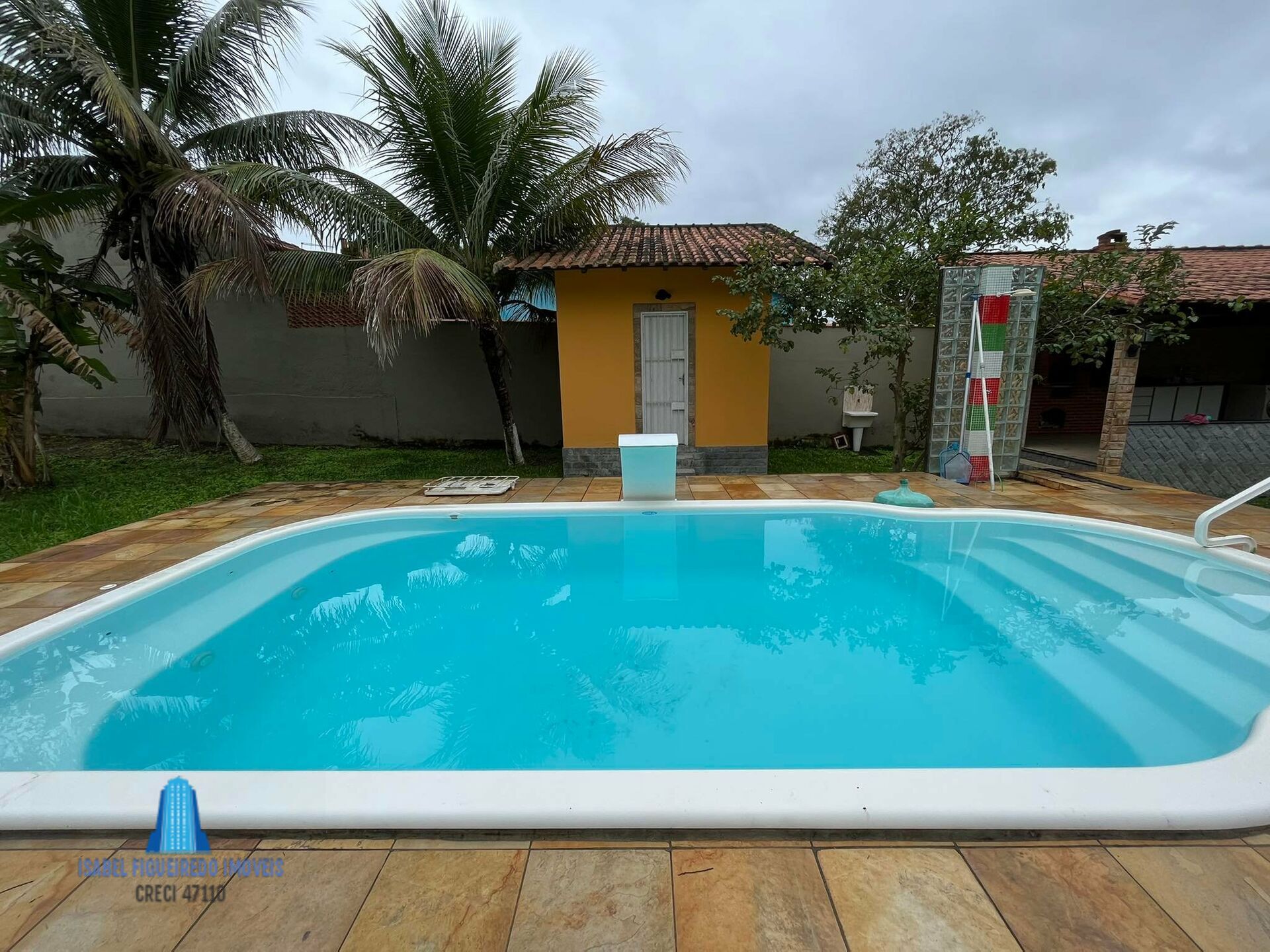 Casa com 3 quartos (sendo 1 quarto externo), sala, cozinha, banheiro, garagem e toda avarandada, piscina com deck de pedra São Tomé, 1 suite na frente da piscina, área Gourmet com fogo a lenha e churrasqueira + um lavabo anexo, outro banheiro externo do terreno, 15 pés de coqueiros e frutíferas, caminho de pedras na extensão da casa, cobertura na entrada principal, água encanada, espaço idealizado para 2 lojas para rua principal.