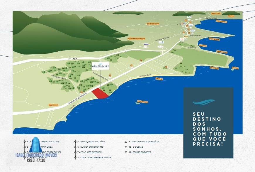 Descubra o privilégio de morar ou investir em um dos locais mais desejados da Região dos Lagos! O Mediterrané é um loteamento exclusivo, com localização privilegiada de frente para a Lagoa de Araruama, infraestrutura planejada e excelente potencial de valorização.